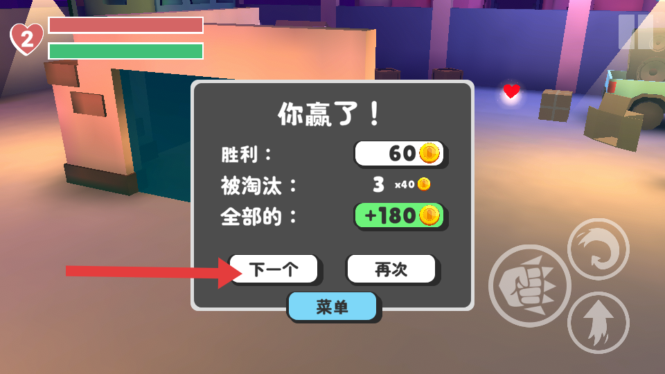 4、成功消灭所有敌人后,点击【下一个】进入下一关。