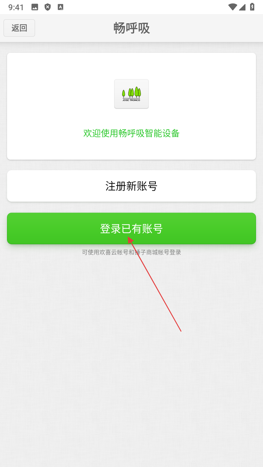 3、在账号登录注册页面,点击【登录已有账号】,进入已有账号登录页面。