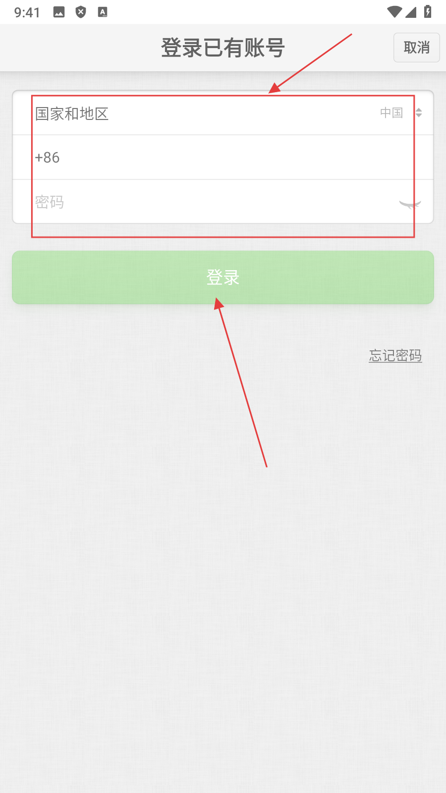 4、在已有账号登录页面【输入信息】后点击【登录】,即可完成账号登录操作。