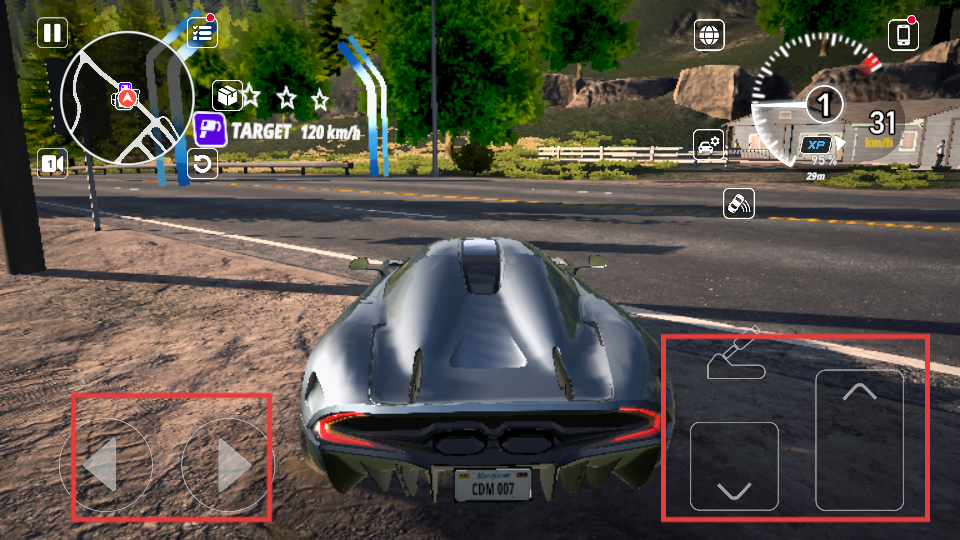 2、利用方向按钮和油门刹车控制车辆行驶,在道路上驾驶。