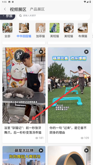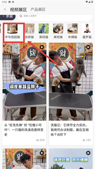 2、在页面选择【中华田园猫-分类标签】,查看对应视频列表。