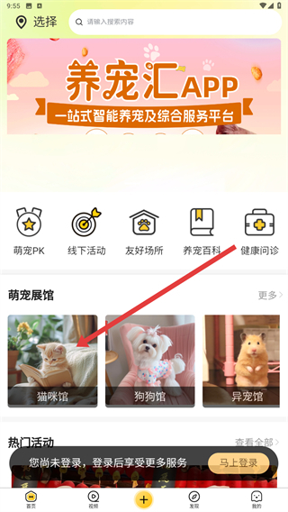 1、在首页点击【猫咪馆-分类标签】,进入猫咪相关内容页面。