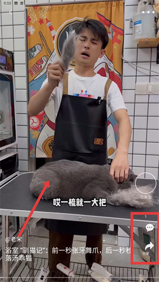 4、在视频播放页,可观看猫咪相关视频,还能点击【分享-功能按钮】分享视频。