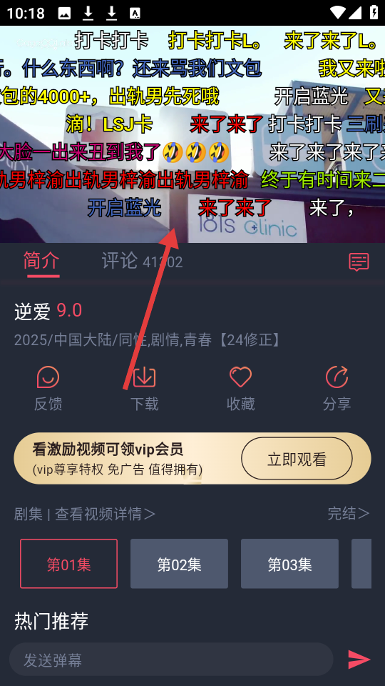 4、进入播放页面后,可点击【开启蓝光】提升画质,还能进行反馈、下载、收藏、分享等操作,也可选择剧集观看。