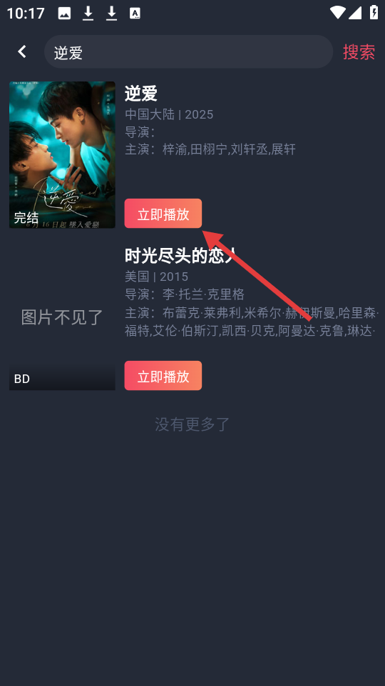 3、在搜索结果中找到《逆爱》,点击其对应的【立即播放】按钮。