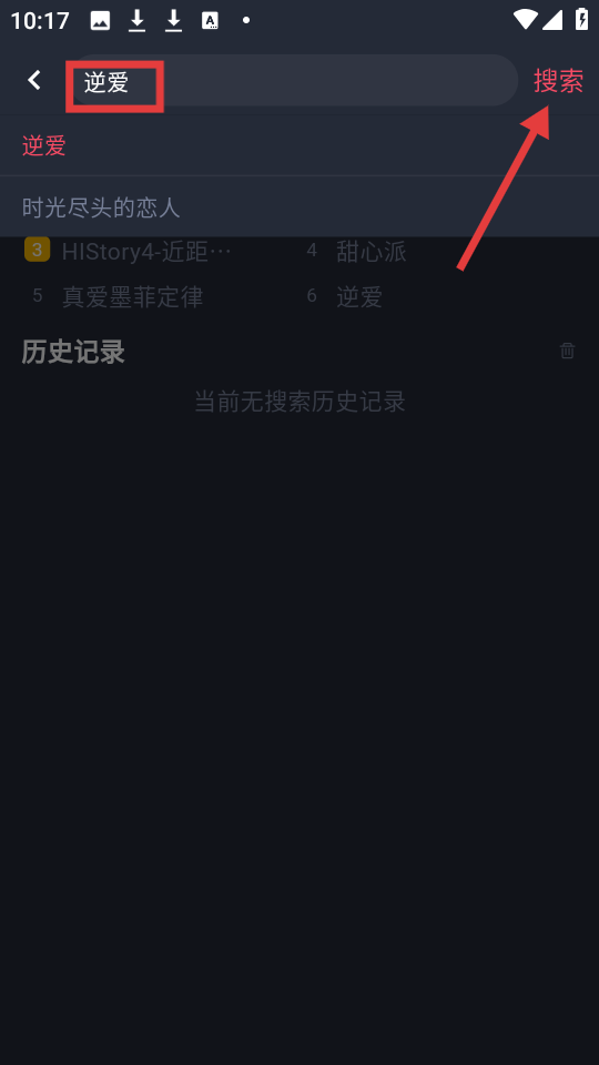 2、在搜索框中输入【逆爱】,然后点击右上角【搜索】按钮。