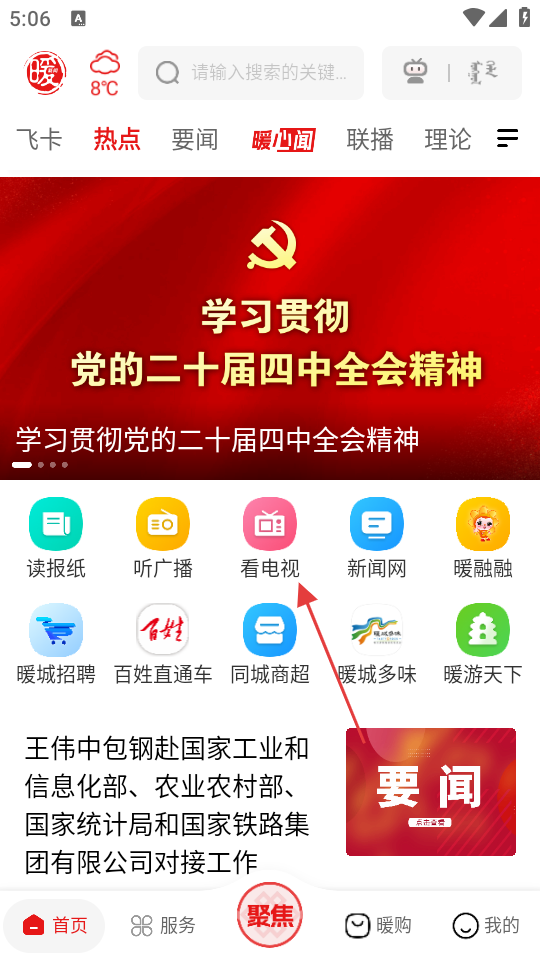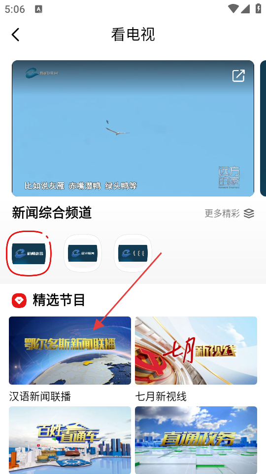 2、在首页,点击【看电视】选项,可进入电视节目界面。