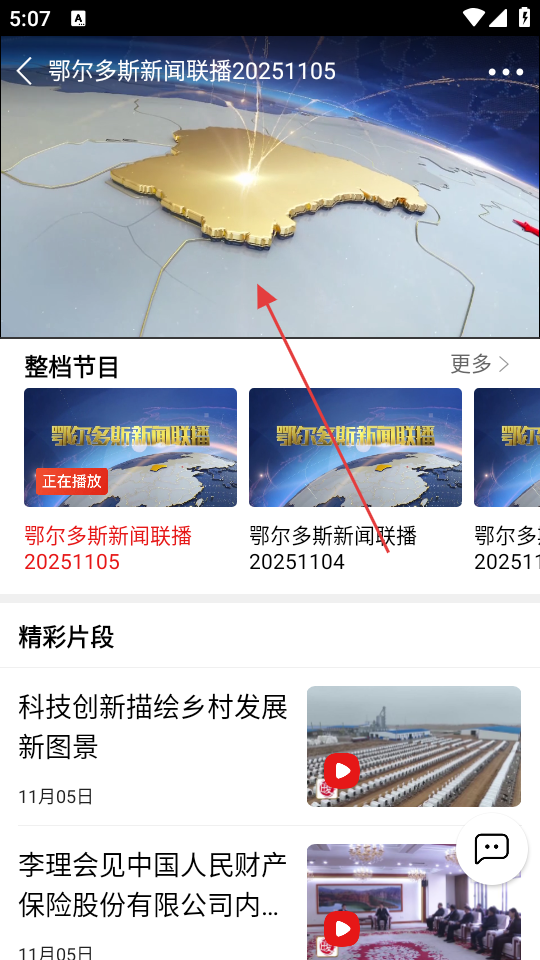3、在电视节目界面,选择心仪的节目如“鄂尔多斯新闻联播”,可进入该节目的播放界面。