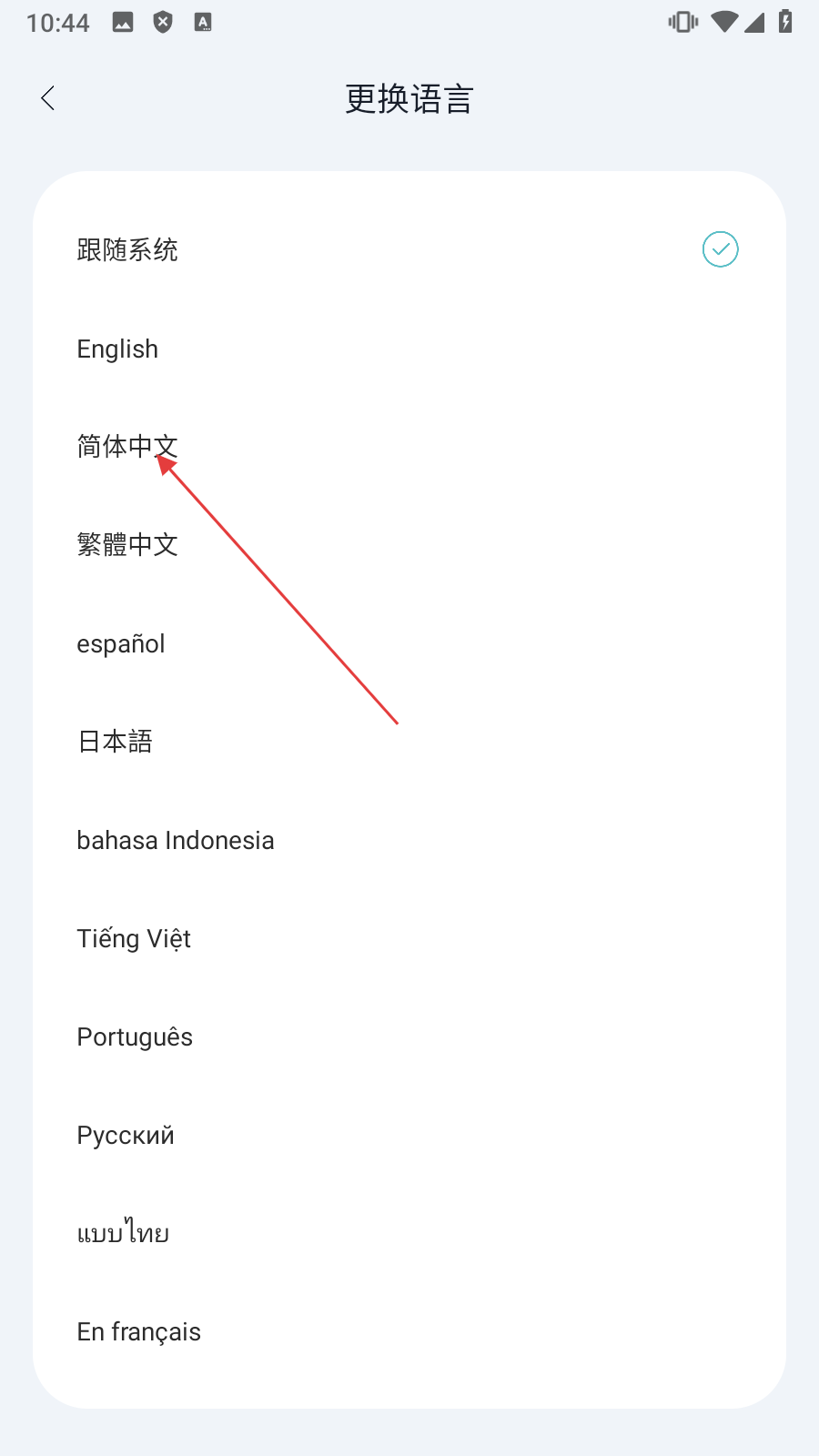 2、在个人页面,点击【更换语言】,进入语言选择页面。