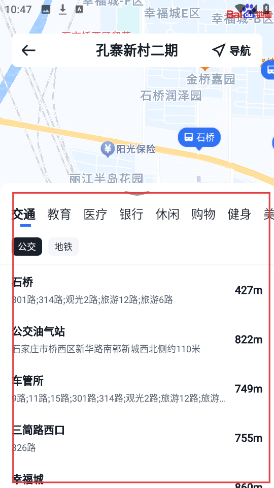 4、在小区地图页,可查看小区周边交通、教育等配套设施,了解小区环境哦。