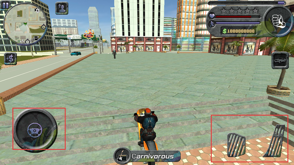 4、驾驶车辆时,利用左侧的方向盘按钮控制方向,右侧的踏板按钮控制加速和减速。