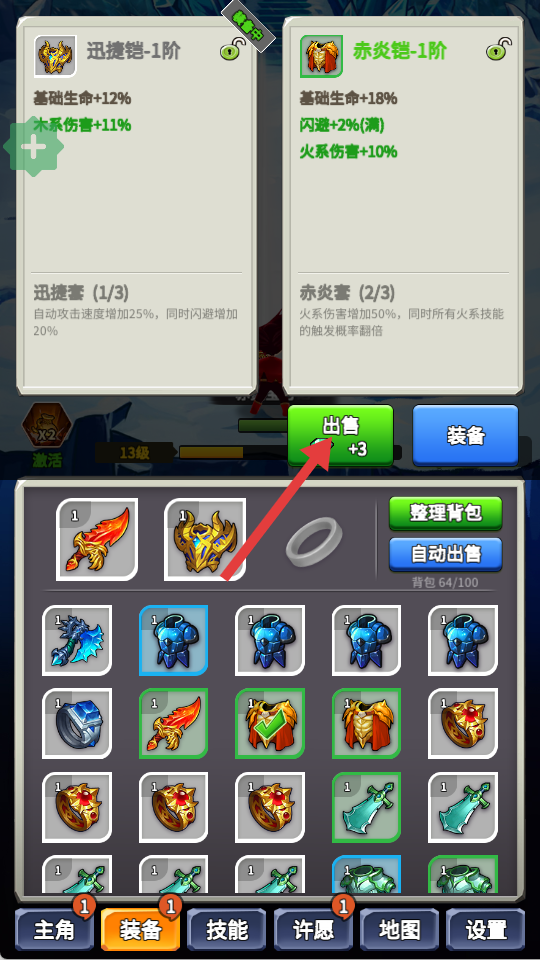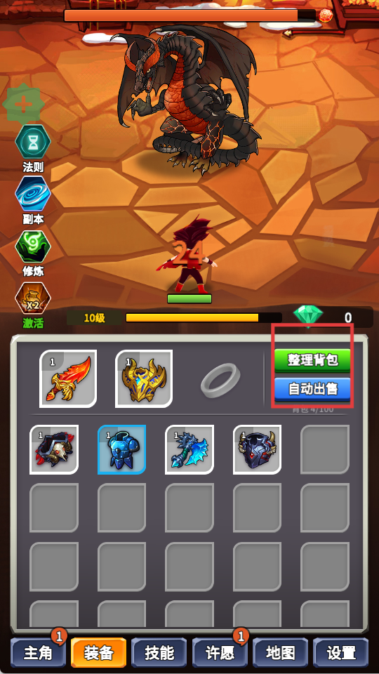 3、出售多余装备,获取钻石,积累资源,用于提升角色属性和技能,增强战斗力。