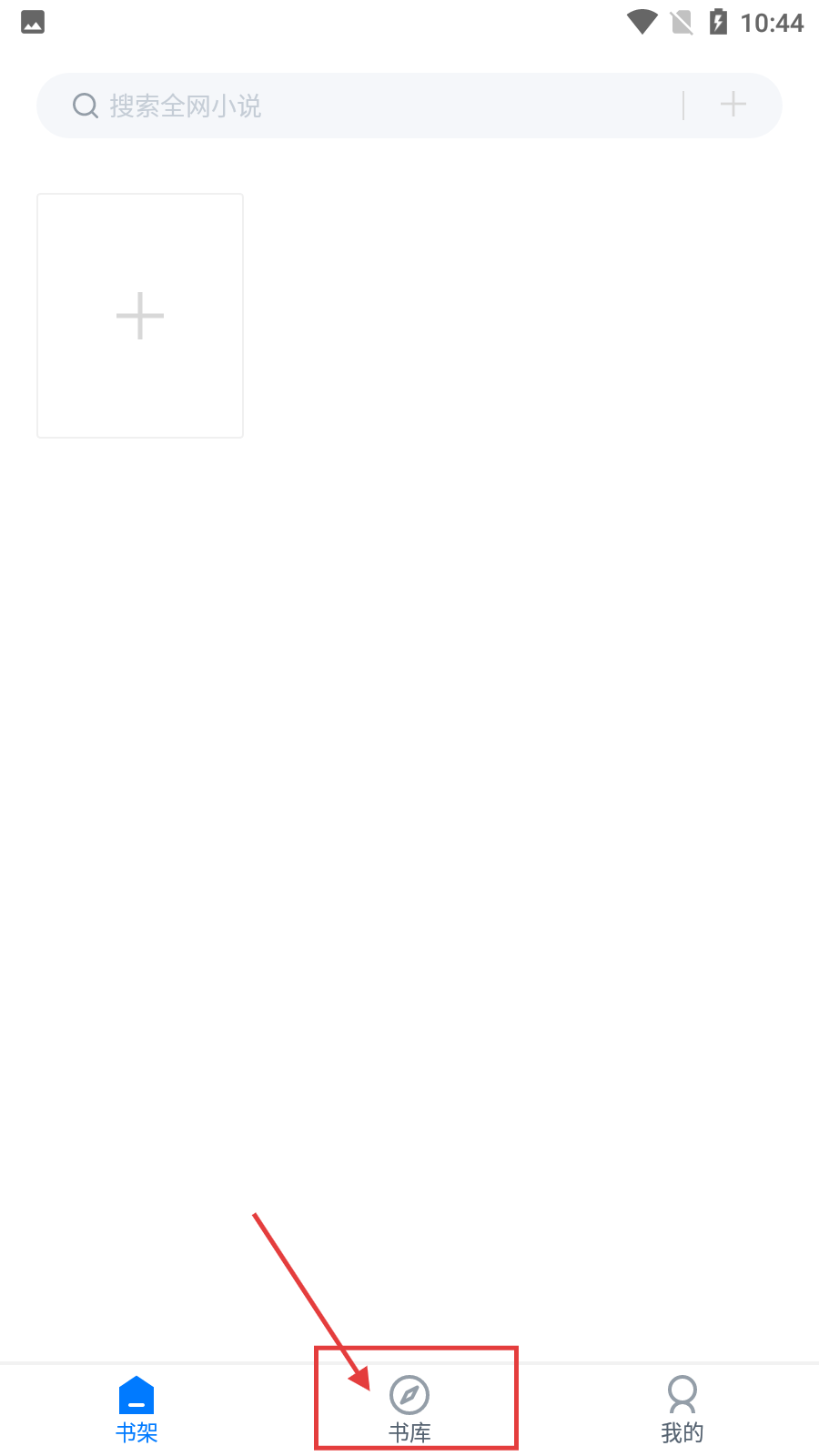 1、打开极简阅读器后,点击底部【书库】按钮,可进入书籍资源库界面。