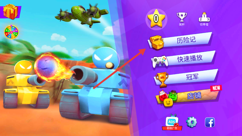 1、点击“历险记”选项进入游戏的冒险模式,开启坦克冒险的旅程,可在该模式中探索不同关卡,完成冒险任务。
