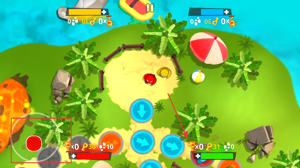 4、利用左侧的虚拟摇杆控制坦克移动,右侧的方向按钮调整坦克的行进方向。