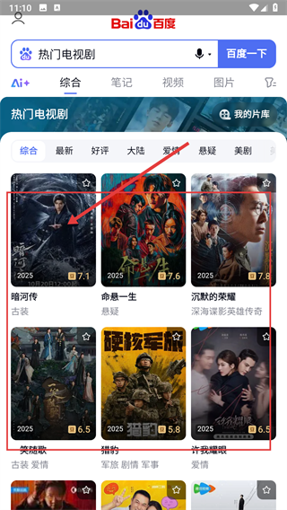 3、在热门电视剧页面,可浏览如《暗河传》《命悬一生》等多部热门剧集,点击目标剧集即可查看详情。