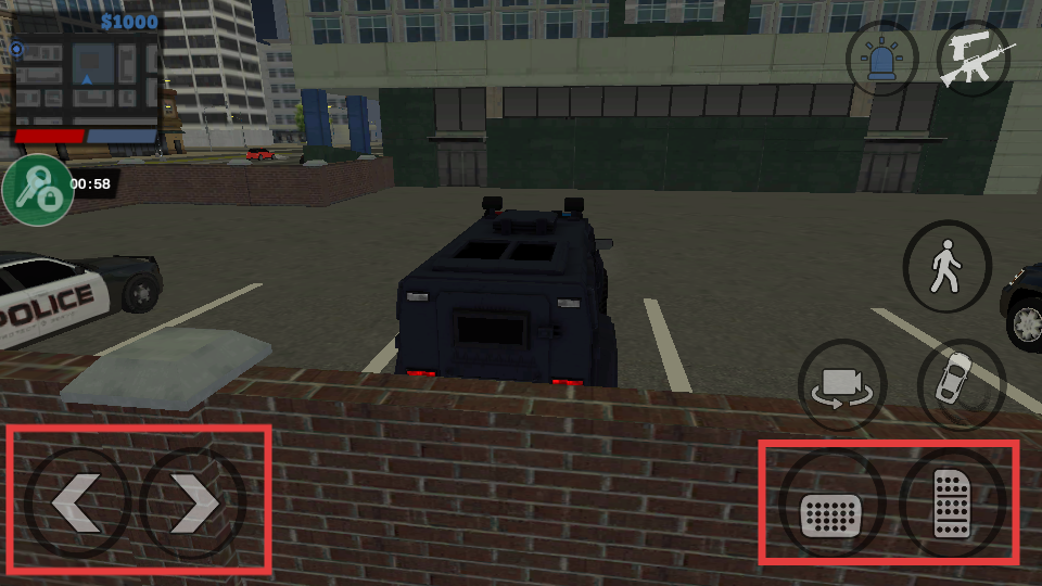 2、驾驶车辆时,用左侧【方向键】控制转向,右侧【加速减速】按钮控制车速,快速赶往任务地点。