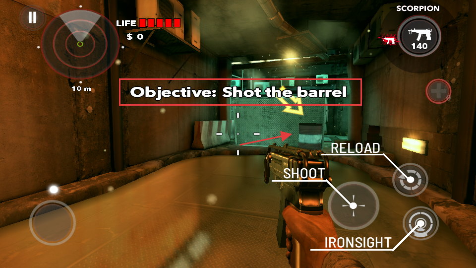 2、目标为射击油桶,瞄准油桶后,点击【SHOOT】键进行射击,界面操作按钮可辅助战斗。