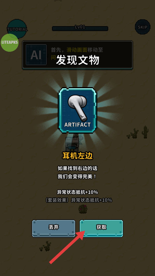 2、发现文物,点击【获取】,提升异常状态抵抗属性。