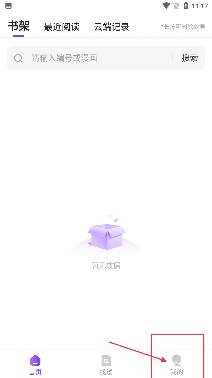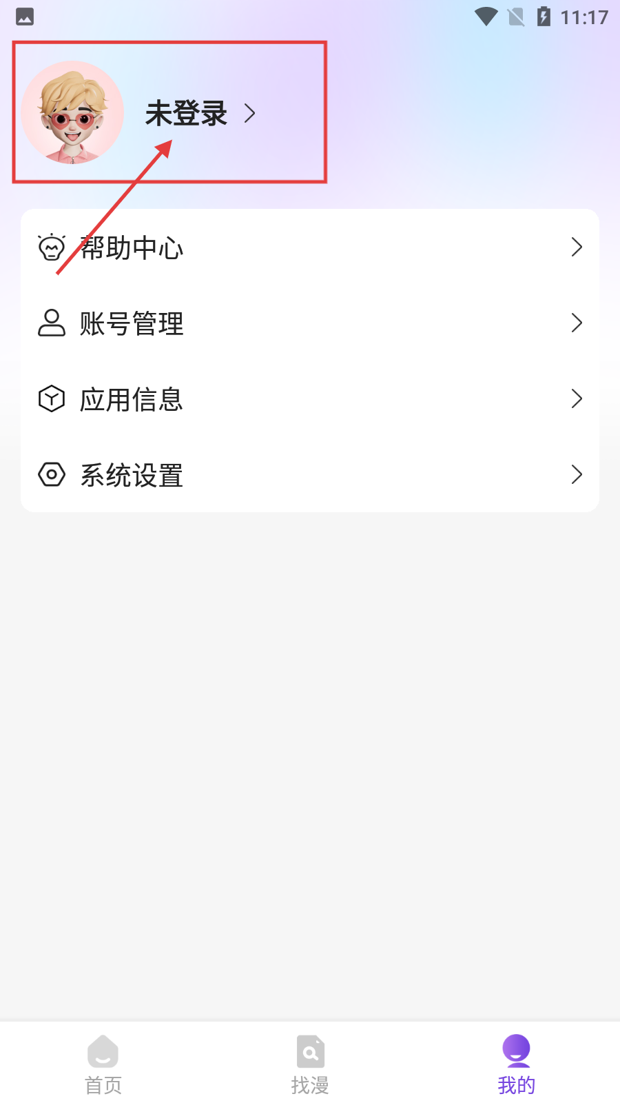 1、打开漫画软件后,点击右下角【我的】按钮,可进入个人中心界面。