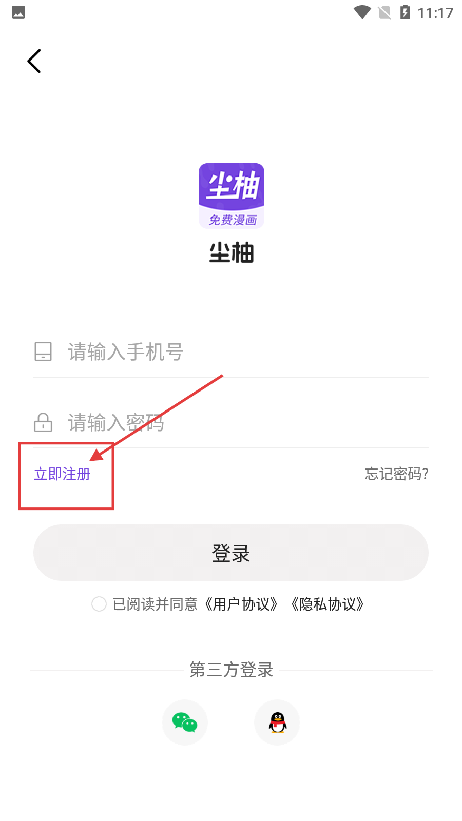3、在登录注册界面,点击【立即注册】按钮,可进入注册账号界面。