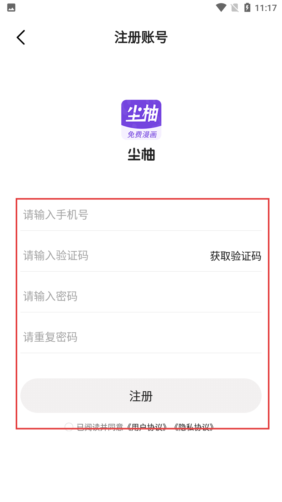 4、依次输入手机号、获取并输入验证码、设置密码并重复确认密码后,点击【注册】即可完成账号注册。