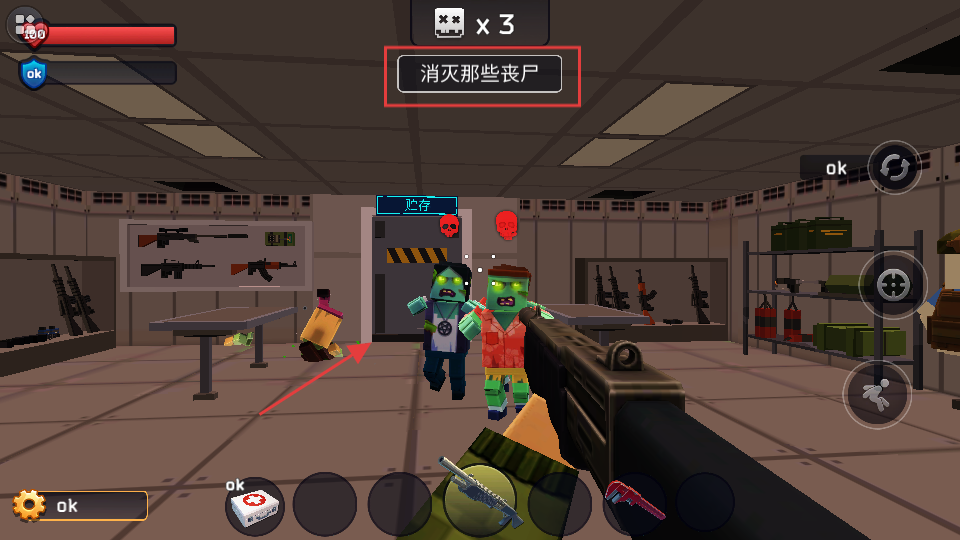 4、使用武器消灭【3】只丧尸,完成任务,注意瞄准射击,关注自身状态与弹药补给。