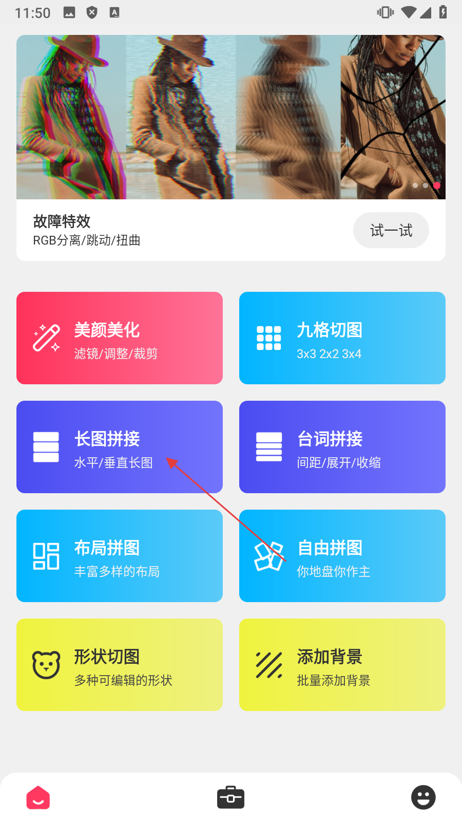 1、点击【长图拼接】,进入图片选择页面。