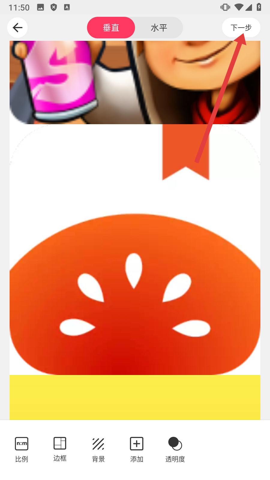 2、在图片选择页面【选择目标图片】后点击【下一步】,进入长图拼接设置页面。