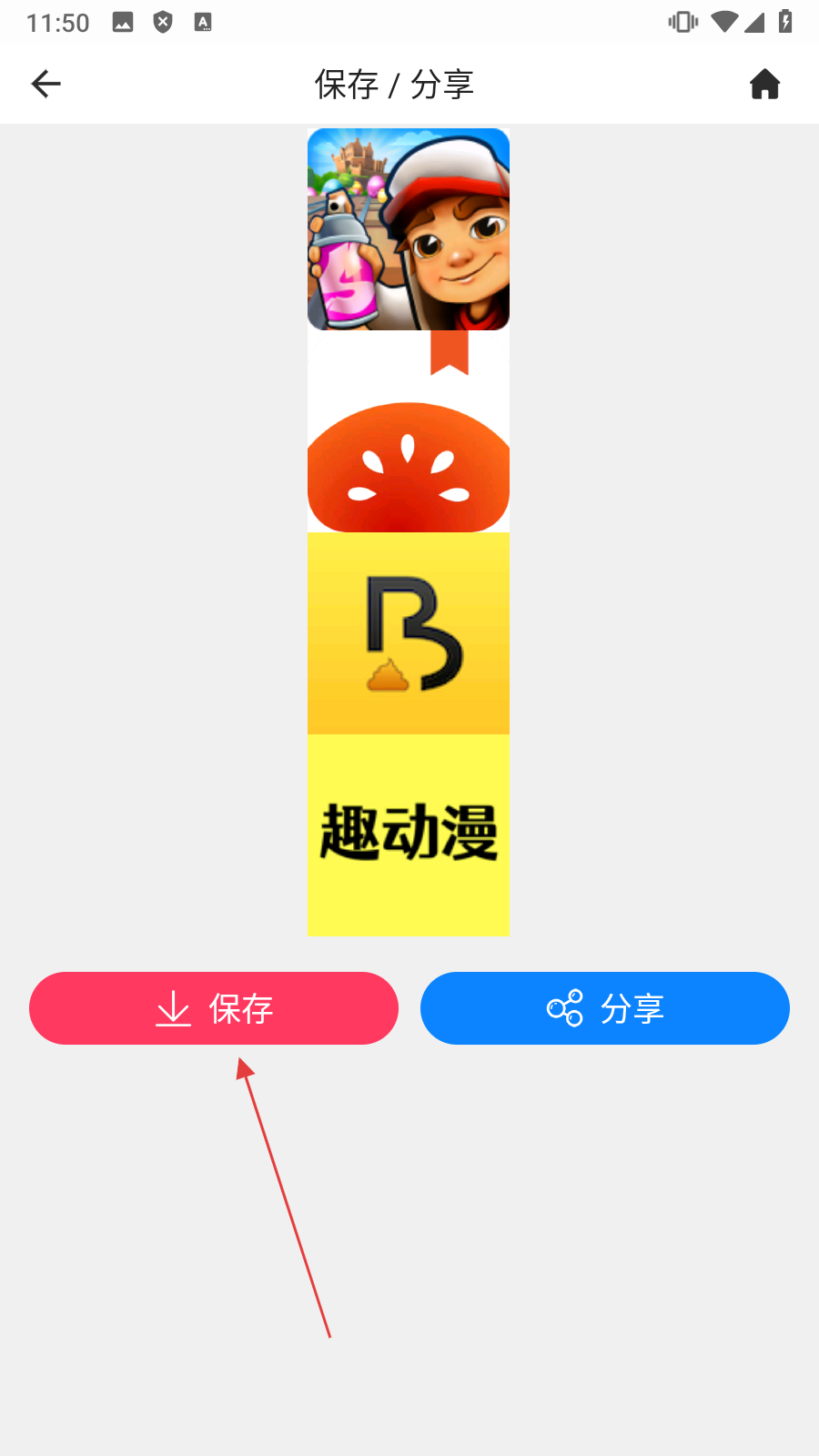 4、在保存分享页面,点击【保存】,即可拼图操作。