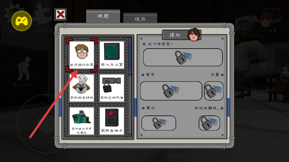 1、在谜题界面,选择“制作撬锁工具”等谜题任务,按照任务要求逐步完成。