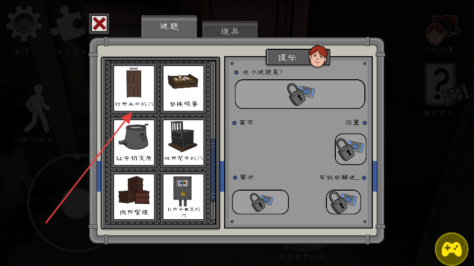 2、根据谜题提示,如“打开出口的门”,在场景中寻找对应的门并尝试打开。