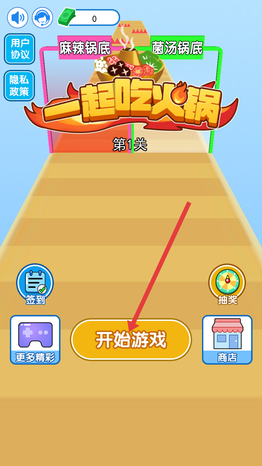 1、在【一起吃火锅】游戏主界面,点击【开始游戏】进入游戏。