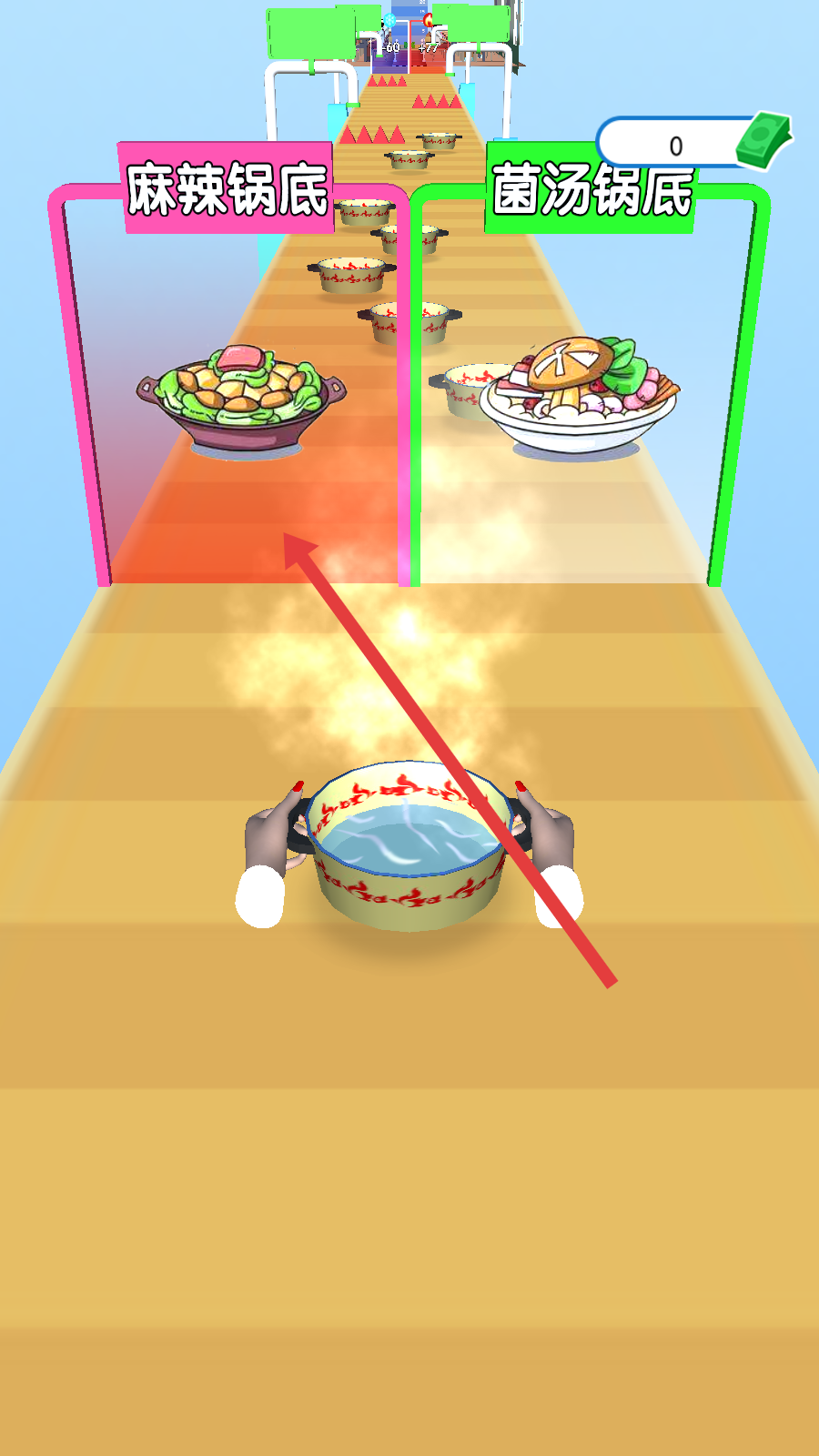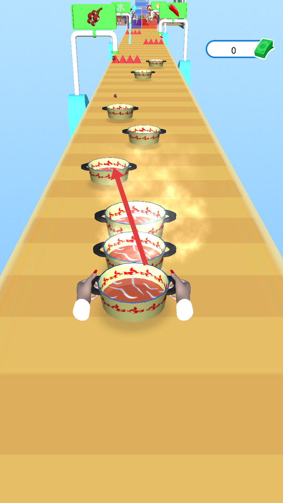 3、在赛道上收集麻辣锅底相关元素,使火锅不断升级。