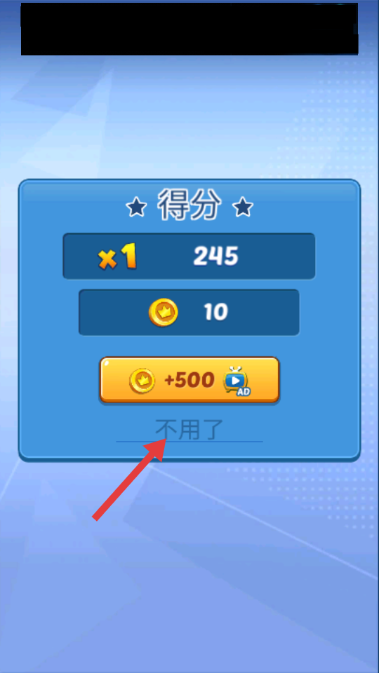 4、游戏结束后,根据得分和金币奖励,选择继续或退出,总结经验,提升下次跑酷成绩。