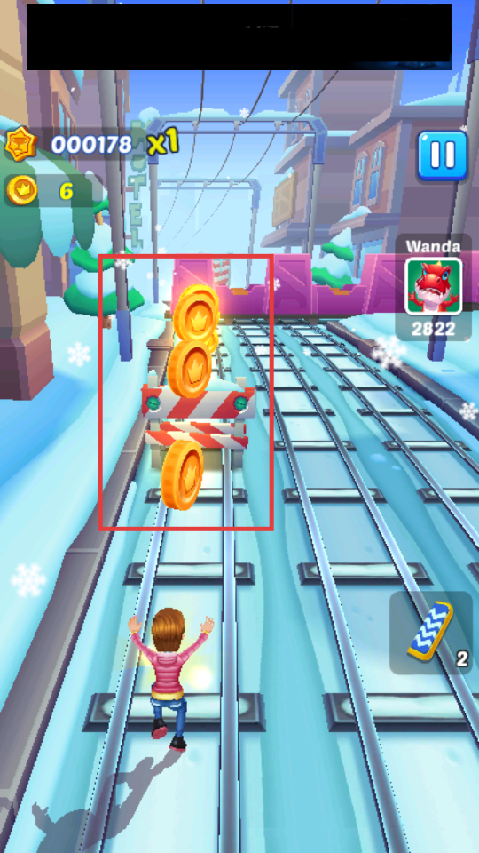 2、躲避障碍物,在轨道上灵活移动,避免碰撞,保持跑酷节奏,提升游戏时长。