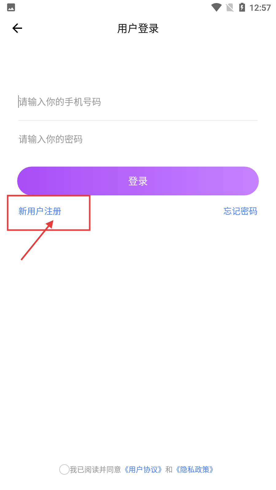 3、在用户登录界面,点击【新用户注册】按钮,可进入用户注册界面。