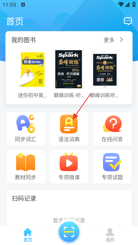 1、在首页找到【语法词典】功能入口,点击进入可查询语法知识。