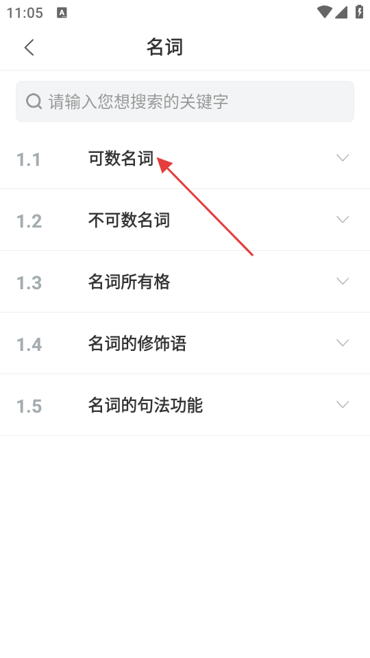 3、在【名词】分类下,点击【可数名词】,可进一步了解可数名词的语法要点。