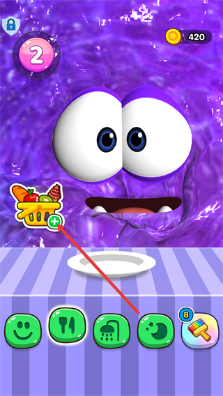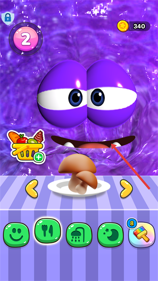 3、购买后,物品会出现在餐盘上,点击怪物使其进食。