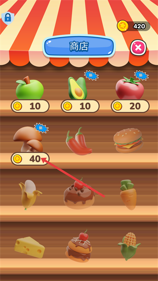2、在商店中,选择需要购买的物品,如标价40金币的蘑菇,点击进行购买。