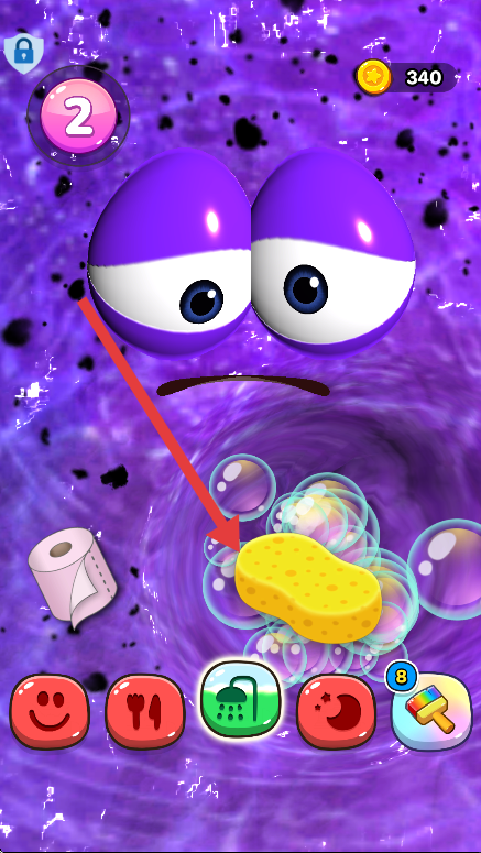 4、在清洁模式下,使用黄色海绵工具清洁怪物周围的污渍和泡沫,清洁完成后,可获得金币奖励。