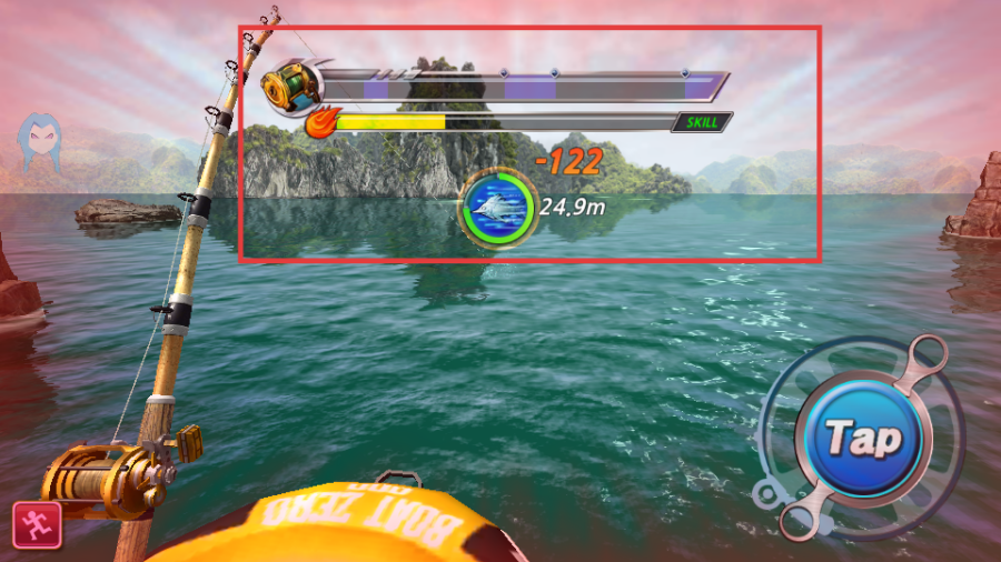 2、点击【Tap】按钮,进行钓鱼操作,等待鱼上钩。
