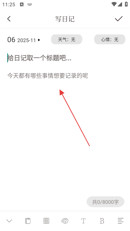 3、在写日记页面,可给日记取标题并记录当天想要记录的事情。