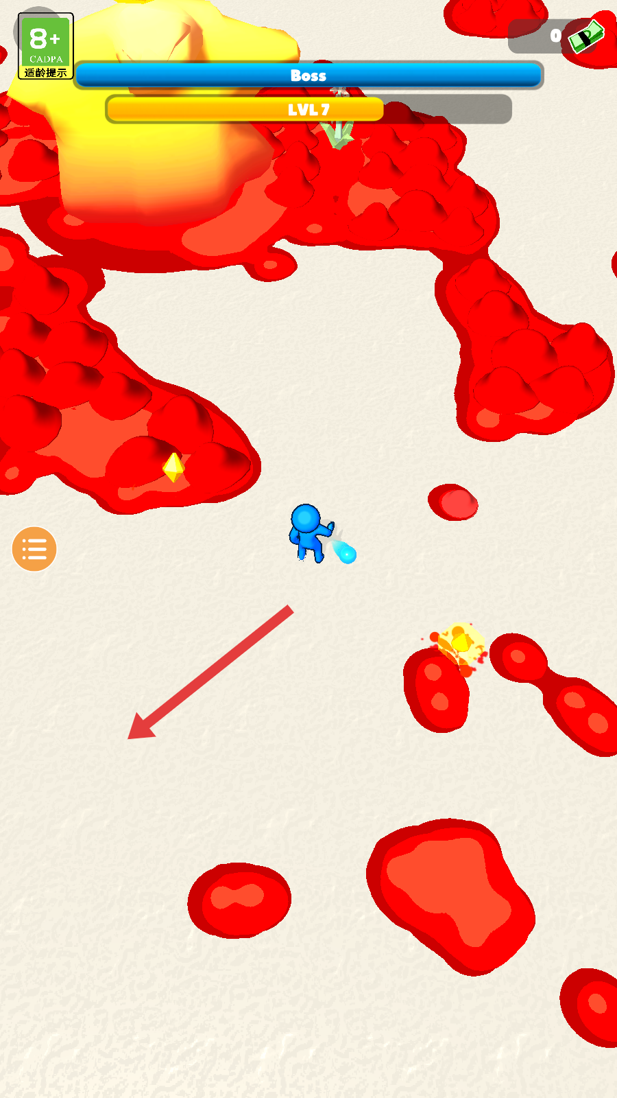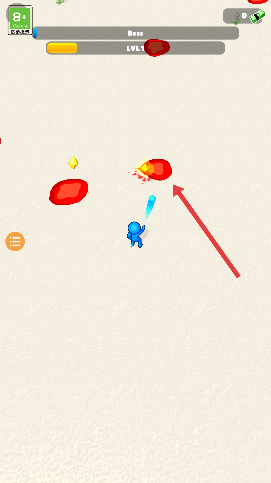 2、遇到红色敌人时,操控蓝色小人发射攻击,消灭这些敌人,同时可收集黄色钻石道具。