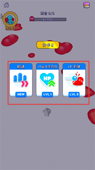 1、关卡5时可选择属性,优先选射速增强输出效率,助力后续战斗推进。