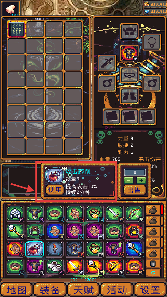 2、战斗前用【攻击药剂】(数【5】,攻加【13%】持【2分钟】),提升输出。