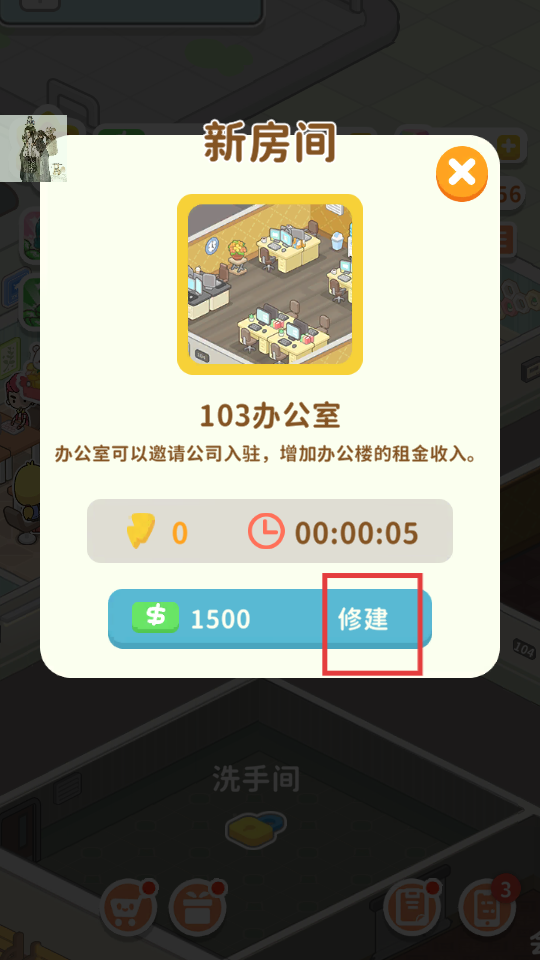 2、花费1500修建103办公室,邀请公司入驻,增加租金收入。
