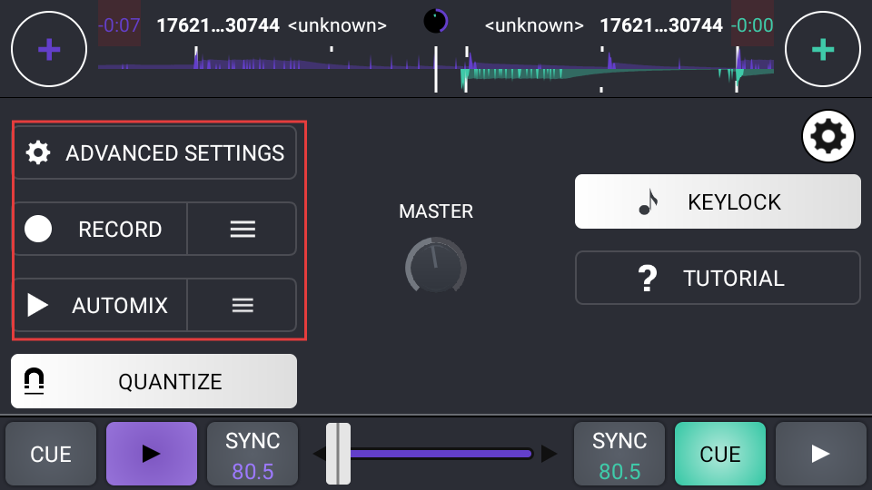 4、在设置页面中,可查看或调整【ADVANCEDSETTINGS(高级设置)】【RECORD(录制)】等功能,根据需求进行音乐混音操作。