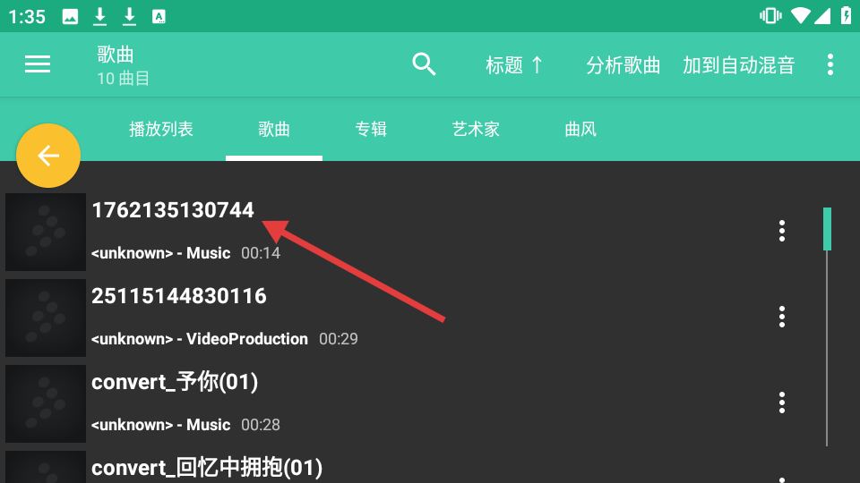 2、在歌曲列表中选择目标歌曲(如“1762135130744”),将其添加到混音轨道。